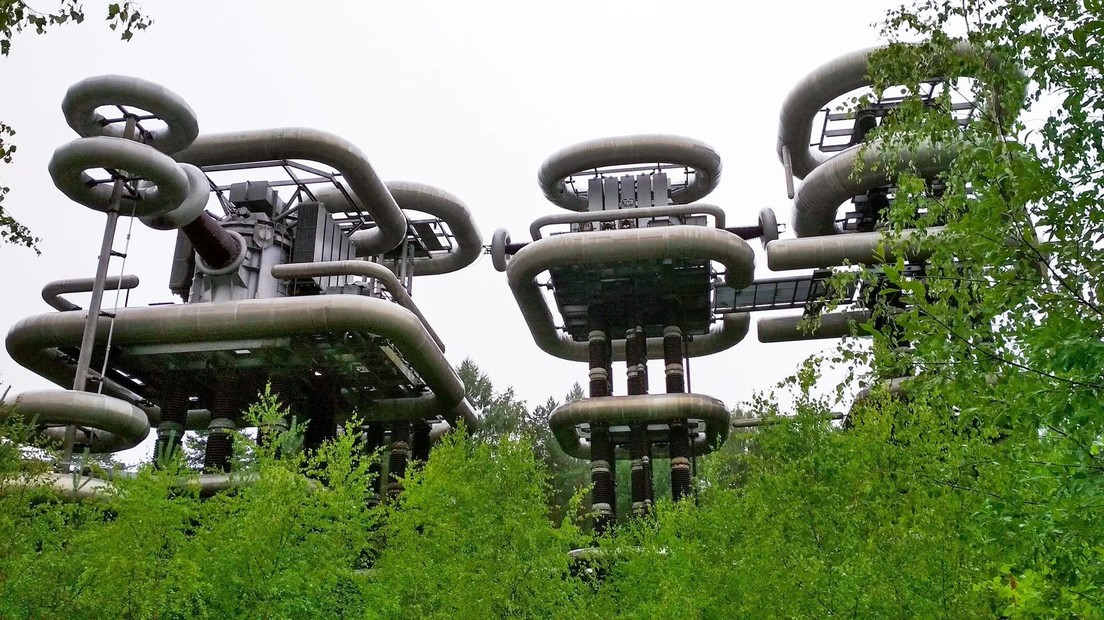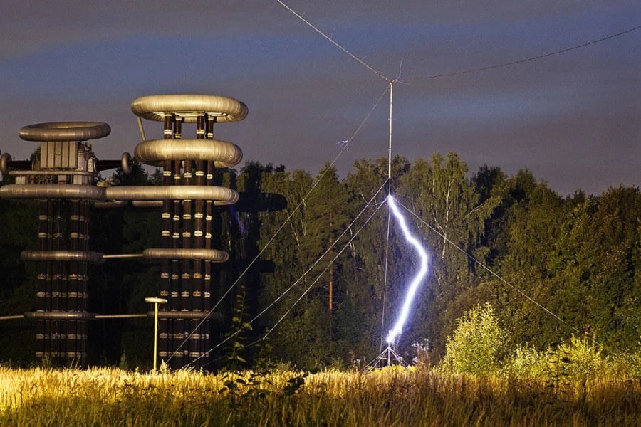 En realidad, estas enormes estructuras cilíndricas con una bobina anular en la parte superior son generadores Arkadyev-Marx, diseñados para el estudio de impulsos eléctricos de alto voltaje, como los rayos. Durante una prueba, el generador más alto creó una descarga eléctrica de 9 megavatios (MV), que alcanzó hasta 150 metros de longitud.
