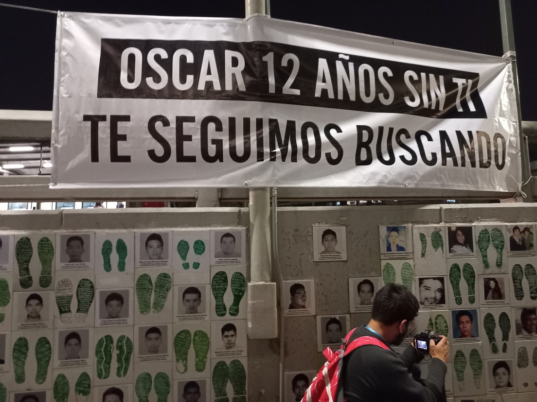 "Las autoridades están ausentes en este momento, como lo han venido haciendo desde hace doce años", dijo Enamorado, mientras a sus espaldas colgaba una manta con la leyenda: "Oscar, 12 años sin ti. Te seguimos buscando".