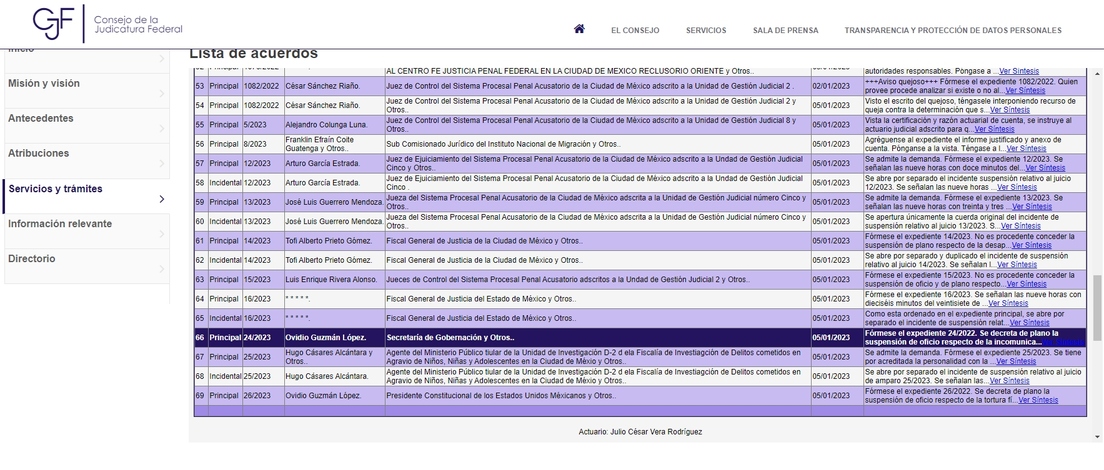 La defensa de Guzmán López interpuso dos recursos de amparo ante el Juzgado Sexto de Distrito de Amparo en Materia Penal en la Ciudad de México. En la síntesis publicada en el sitio web del Consejo de la Judicatura Federal (CJF), se explica que el juez concedió este 5 de enero, en el expediente 24/2023, la "suspensión de oficio" respecto a cualquier incomunicación del detenido.