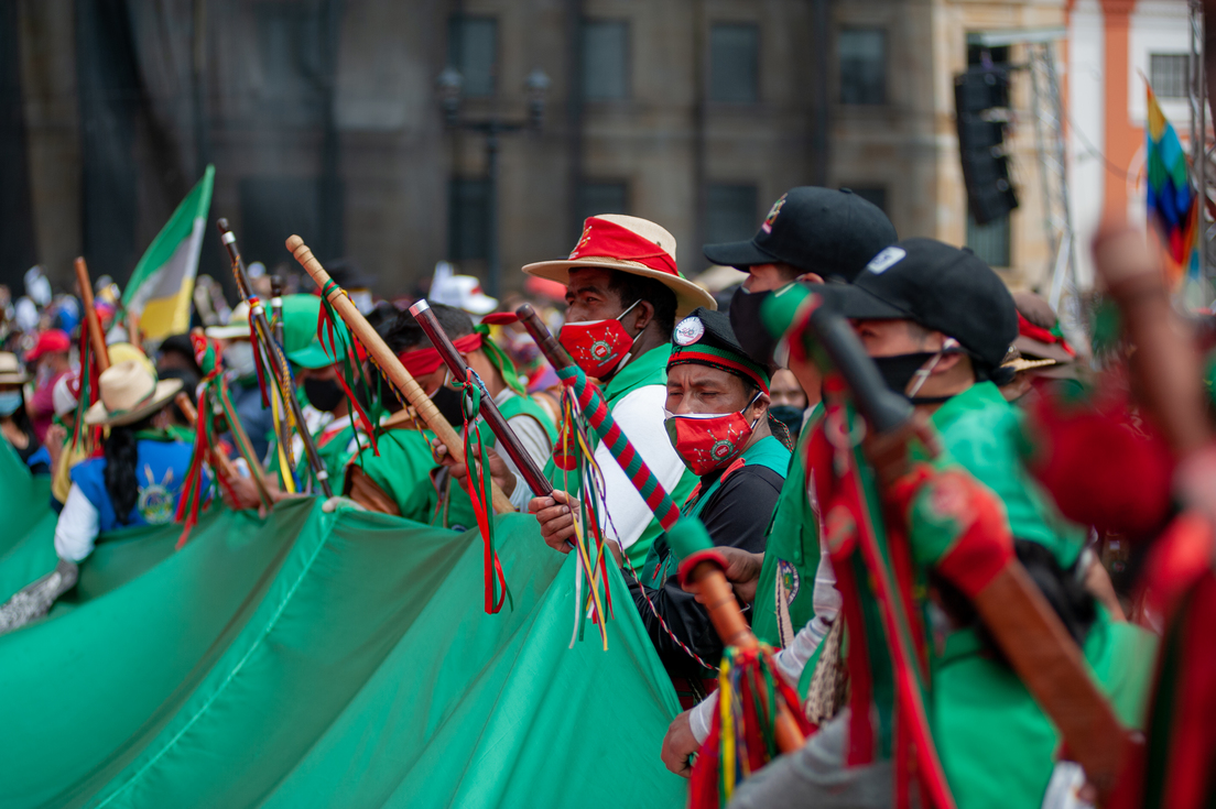Durante las movilizaciones antigubernamentales contra el gobierno de Iván Duque (2018-2022), los manifestantes indígenas que se trasladaron a las grandes capitales a pedir la presencia estatal en sus territorios y el cese de la violencia, de la que son las principales víctimas, fueron duramente reprimidos por los miembros del extinto Escuadrón Móvil Antidisturbios (ESMAD) y atacados por civiles armados, principalmente en la ciudad de Cali (Valle del Cauca).