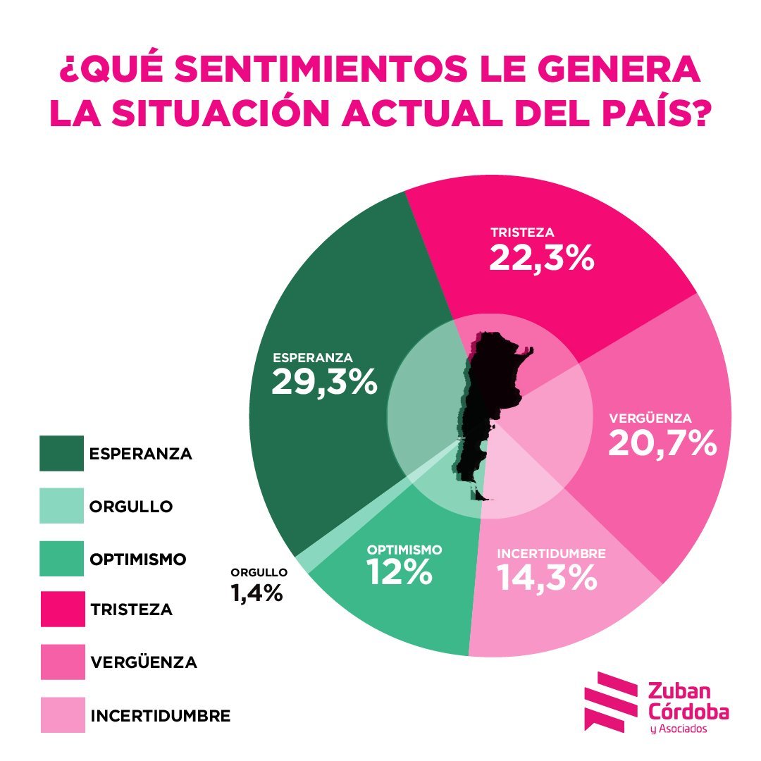 Aunque el 29 % tiene esperanza y el 12 %, optimismo, quienes respondieron vergüenza, tristeza e incertidumbre suman un 57,3 %.
