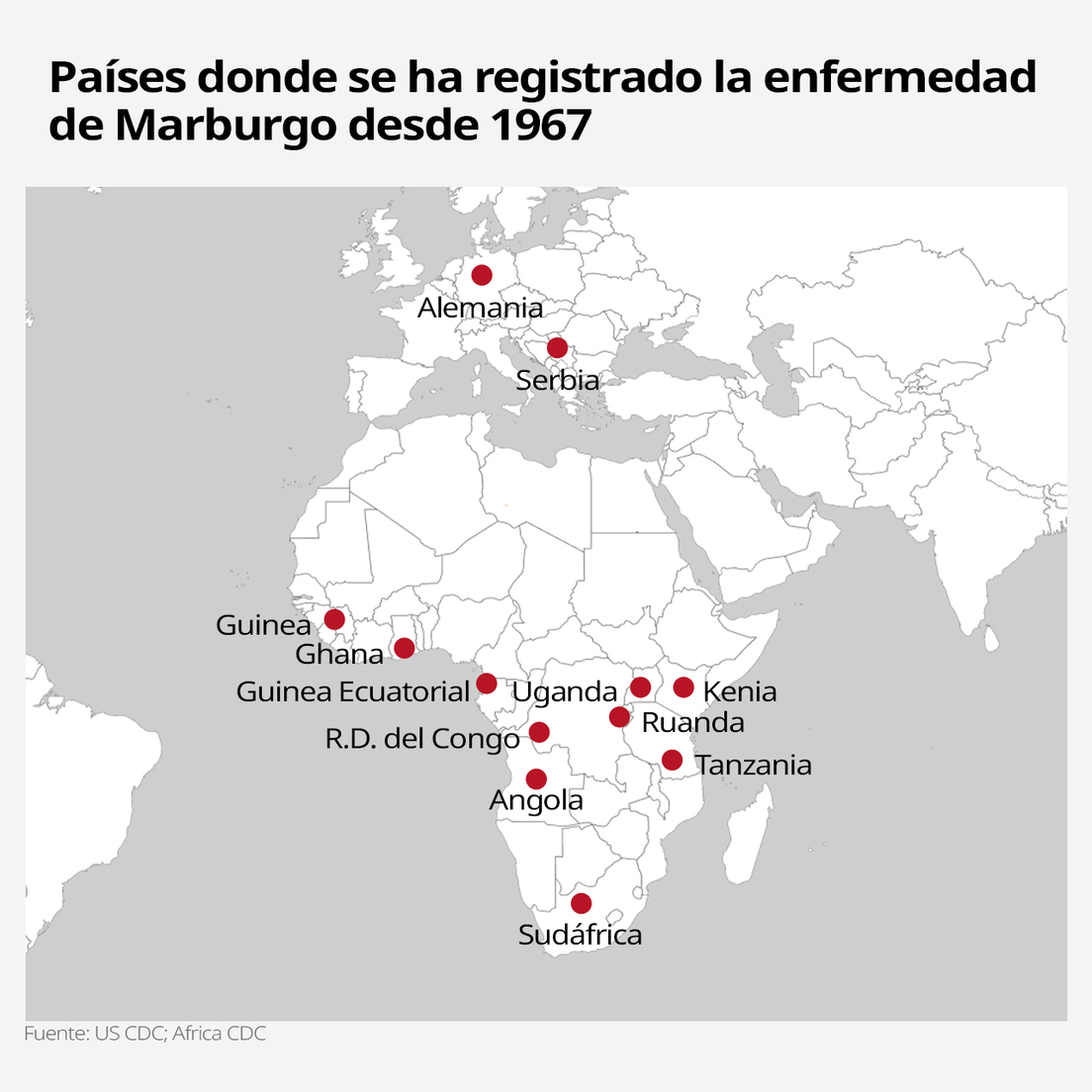 En 1967, se registraron los primeros brotes en laboratorios ubicados en las ciudades alemanas de Marburgo y Fráncfort, así como en uno localizado en la capital serbia, Belgrado. Estos brotes en Europa se asociaron al contacto con monos verdes procedentes de Uganda.