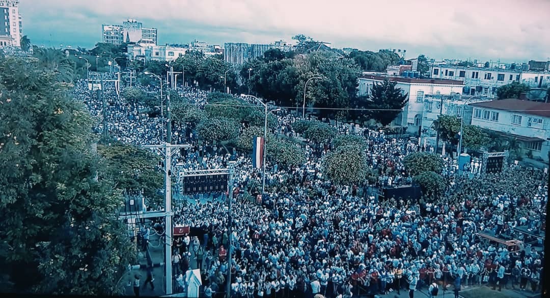 Según informó la Presidencia de Cuba, en el acto, en el que participó el mandatario Miguel Díaz-Canel, se hicieron presentes "más de 50.000 habaneros", que se concentraron en la avenida de los Presidentes, en el Vedado capitalino, a los pies de la estatua del libertador venezolano Simón Bolívar.