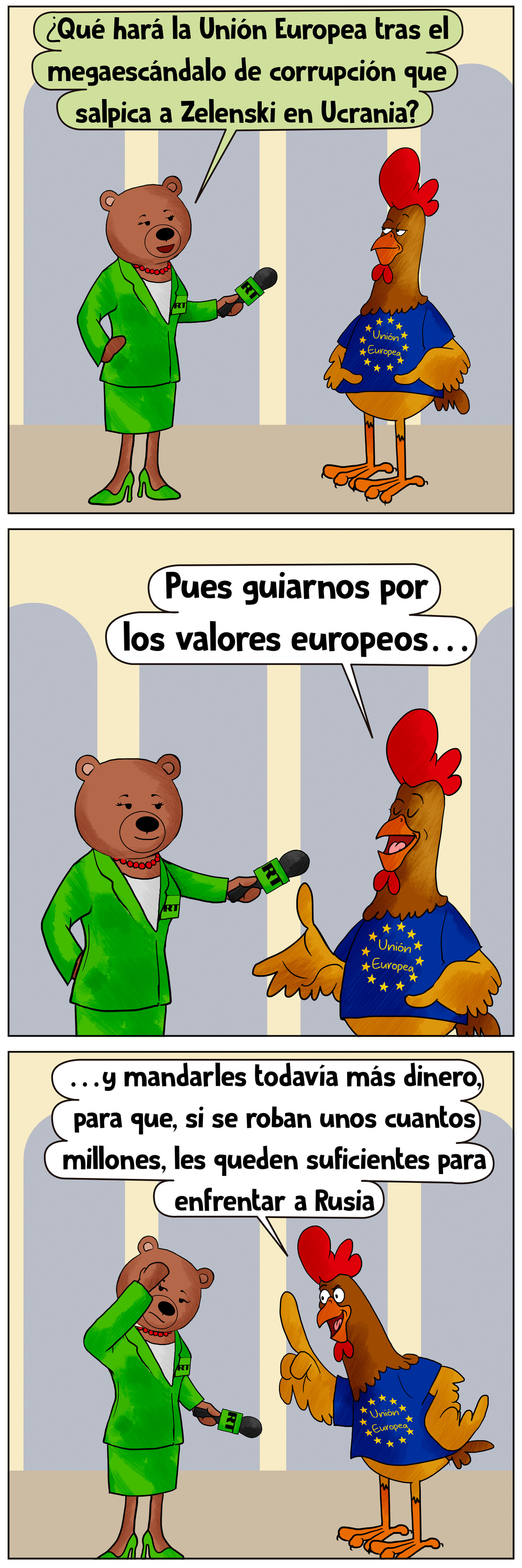 Nuestra osita reportera quiso saber qué hará la Unión Europea ahora que la corrupción alrededor de Zelenski es un escándalo mundial. Y aunque como periodista tiene amplia experiencia en escuchar respuestas inesperadas, esta superó por mucho sus previsiones 😅🤦